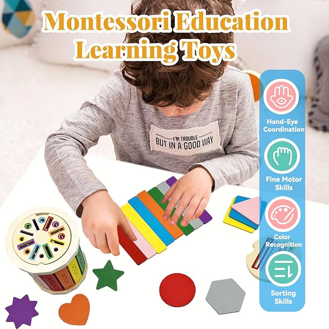 - Premium Quality - Safe and Sturdy: Crafted from high-quality wood, featuring a smooth, splinter-free surface and rounded edges, this durable wooden baby toy is built to last and exceeds US safety standards, ensuring a secure and enjoyable experience for kids
