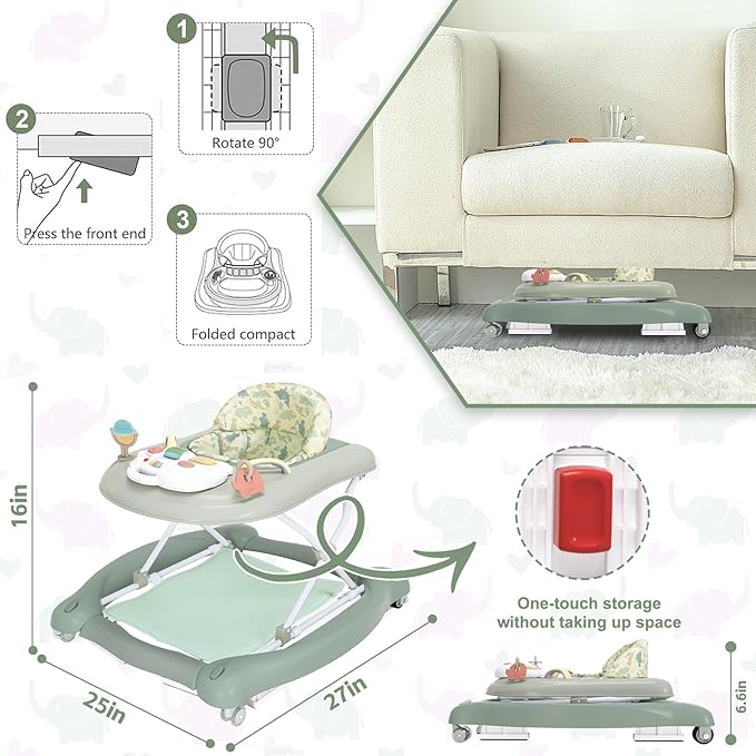 - Easy To Assemble And Fold: The baby boy and girl walker is easy to assemble and folds the walker with wheels in just a few steps, then unfolds and sits baby down; the baby girl walker can be stored under the bed or under the sofa without taking up too much space. The compact folding design makes this collapsible baby walker easy to carry around!