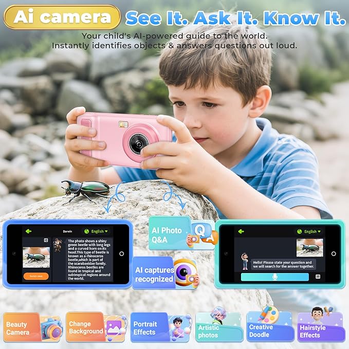 - 100+ Stickers & Filters, Creativity Unleashed: From cute animals to magical effects, every shot becomes a masterpiece. Even turn photos into cartoons or paintings! Watch your child’s imagination soar.