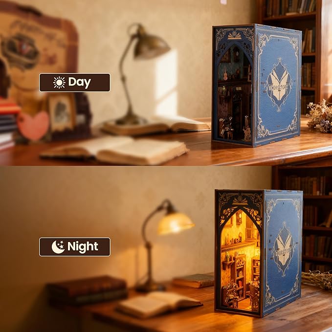 - 【Beginner-Friendly Book Nook Kits】This charming DIY miniature bookstore features pre-cut pieces and a colorful step-by-step manual for stress-free assembly (1-2 hours). Perfect for first-time crafters, it creates an exquisite bookshelf decor piece with magical lighted details - no experience needed to enjoy this immersive miniature world!