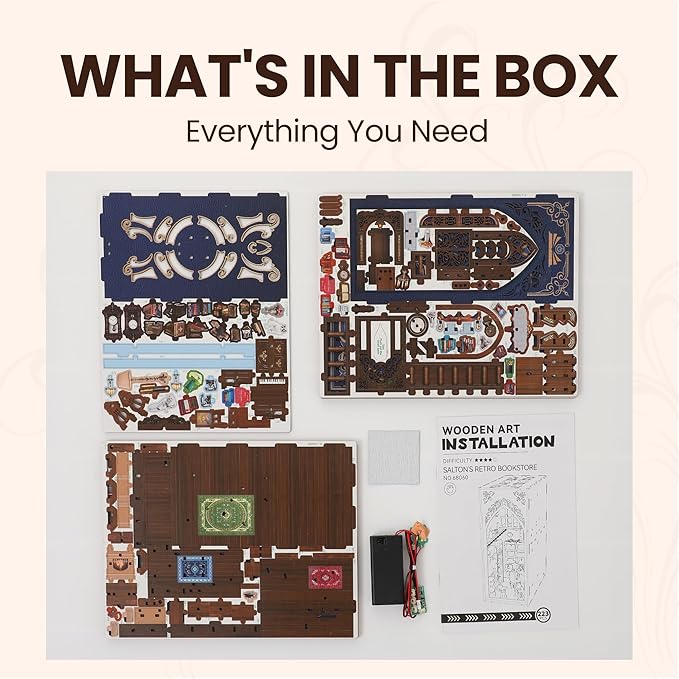 - 【Premium 3D Wooden Puzzles for Adults】Crafted from high-quality 2.5mm imported wood, this durable DIY book nook features excellent craftsmanship for long-lasting use. Each piece is precision-cut and carefully inspected to ensure complete, safe components that won't easily damage - perfect for creating a sturdy miniature masterpiece.