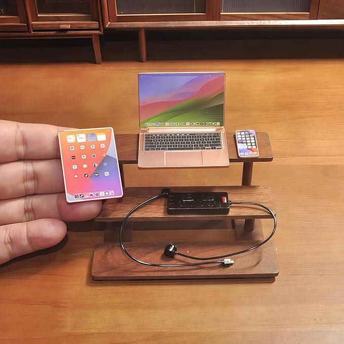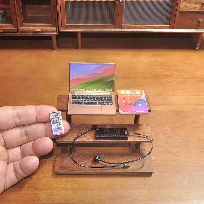 - FULL MODERN TECH SET:Includes 4 essential miniature dollhouse accessories: Smartphone + Tablet + Laptop + USB Socket—ideal for offices, cafes, or modern dollhouse scenes.