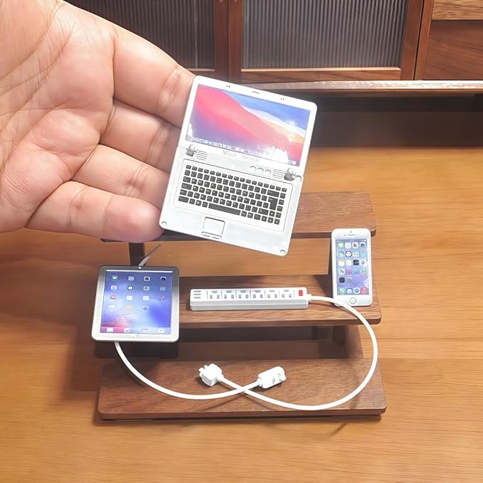- HIGHLY DETAILED 1:6 SCALE MINIS – Features a smartphone, tablet, laptop & wall socket, crafted with precision realism for miniature collectors. Compatible with 1:12 scale dollhouses as statement props.