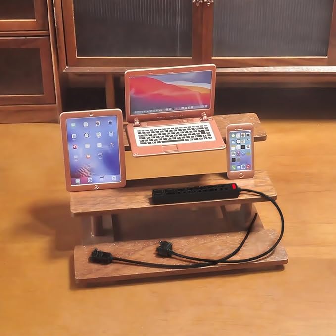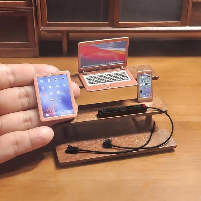 - HIGHLY DETAILED 1:6 SCALE MINIS – Features a smartphone, tablet, laptop & wall socket, crafted with precision realism for miniature collectors. Compatible with 1:12 scale dollhouses as statement props.