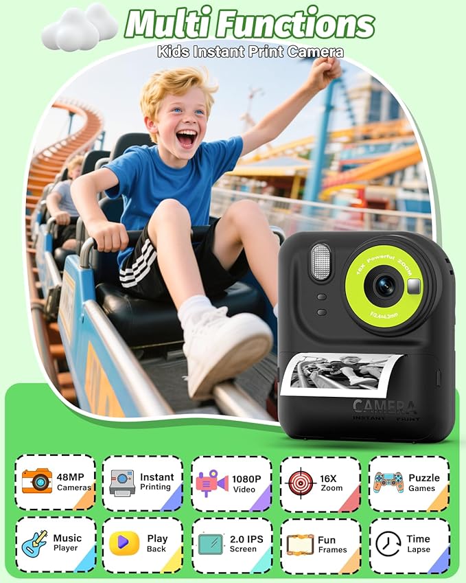 - Multifunctional Learning Tool: This device features 1080p HD video recording and captures 48MP still images, enhanced with creative photo filters. It also includes interactive learning games and MP3 audio playback, supporting cognitive development while providing engaging entertainment.