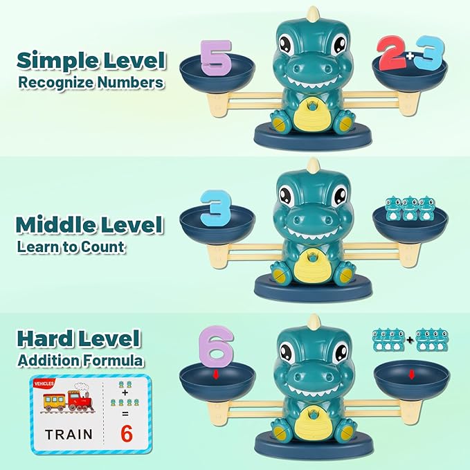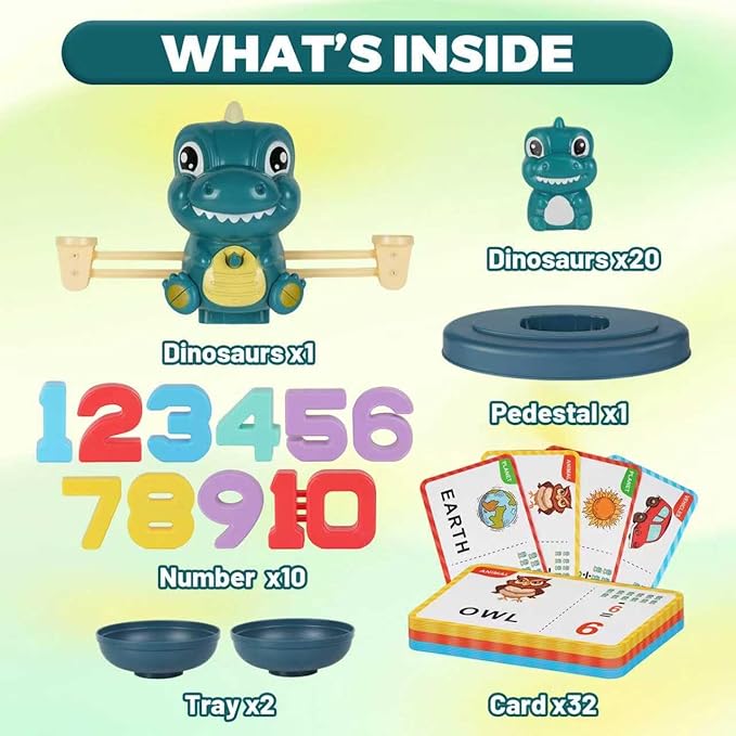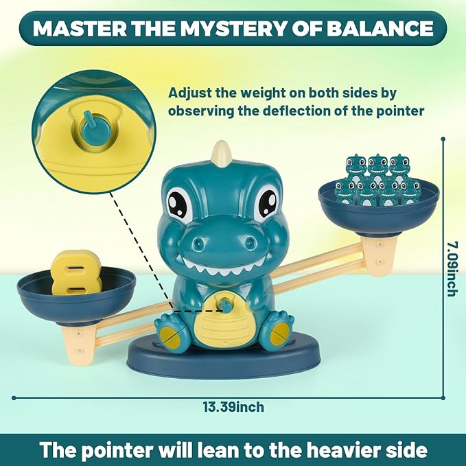 - 【Fun & Educational Counting Toys for Kids】Kids will enjoy balancing numbers and toy dinosaurs to solve simple equations. These counting toys help reinforce concepts of weight, value, and basic math operations through hands-on play.