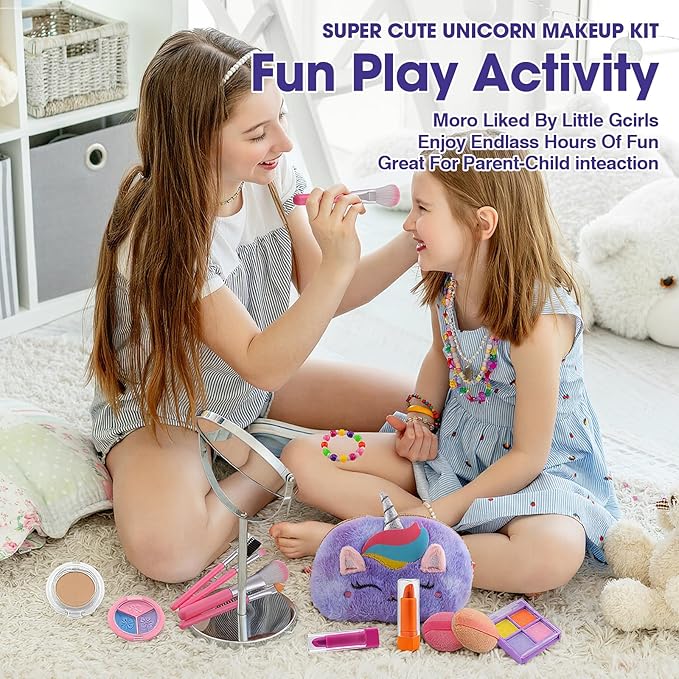 - 【The Perfect Gift for Girls 3-12 Years Old】Looking for a birthday, holiday, or valentines day gifts for her? This unicorn makeup kit is a guaranteed hit! The deluxe 21-piece set in a stunning gift-ready package will delight any little girl. It's the top choice for girly toys for 4 year old girl and up, making it an unforgettable present for girls ages 3-5, 6-8, and 8-12. Create lasting memories with the ultimate kids non toxic makeup gift