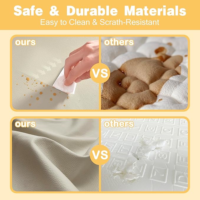 - Tough & Durable: Crafted from premium vegan leather, this cover is built to last. Its scratch-resistant surface confidently withstands scrapes from toys and toddler adventures, while the secure grip on the floor ensures the mat stays firmly in place, creating a stable and safe zone for years of play.
