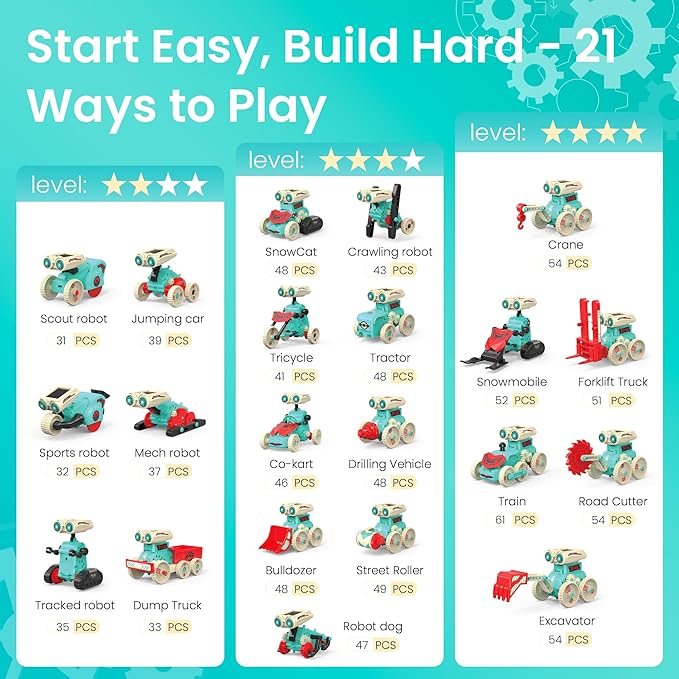 - 📖 Step-by-Step Manual & Handy Tools: The kit includes a detailed instruction book with clear steps. The included tools help kids assemble and disassemble parts more easily, making the building process smooth and enjoyable