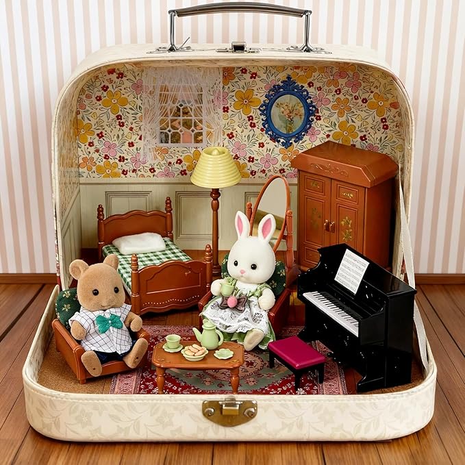 - Portable Dollhouse Kitchen In A Suitcase -Spark Imaginative Play Anywhere:This playset transforms from a compact suitcase into a charming kitchen and dollhouse furniture! you'll find a cozy kitchen Dining table, kitchenware, tableware, refrigerator, bread, 2 dolls with cloth (bunnies & bears). Everything stores neatly inside—just close the lid, grab the handle, and take imaginative fun on the go. Perfect for travel, playdates, or cozy afternoons at home.