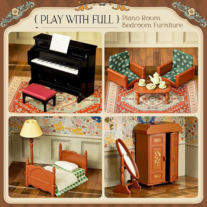 - Child-Safe Construction Built to Last: Made from high-quality, non-toxic materials with smooth, rounded edges, this dollhouse is designed with your child's safety in mind. The durable furniture can withstand active play, while the soft fabric doll clothes are gentle for little hands. You can relax knowing this set is both fun and completely safe for years of adventures.