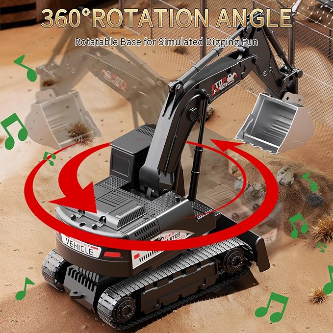 - Full Operation Play: Control your rc excavator for kids to pick up, raise, unload, and rotate 360°. Light add excitement, while sound can be turned off for quiet indoor play anytime. Kids can explore construction tasks and role-playing