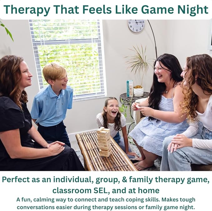 - Coping Skills Game for Kids & Teens – 48 blocks with prompts to teach emotion regulation, mindfulness, and calming skills. Ideal for anxiety, anger, and stress relief.