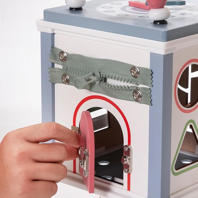 - 【Safe, Durable & Child-Friendly】Made of premium solid wood with smooth, rounded edges, this activity cube for baby is built to last and safe for little hands. Each component is carefully polished, ensuring safe playtime. Parents can feel confident knowing their child is playing with a high-quality educational montessori wooden toy.