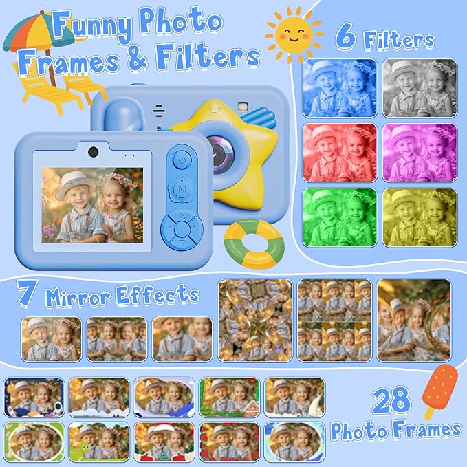 - 【Camera for Kids to Take Selfies】 This 1080P waterproof kids camera is equipped with dual-screen selfie mode which frames your shots perfectly, your kids not just capture precious moments with friends and family but also explore and create to their heart's content. No more fretting over the risk of your cell phone taking an accidental dip in the water. It is perfect for kids love being in the water, the tub, the pool or the beach.