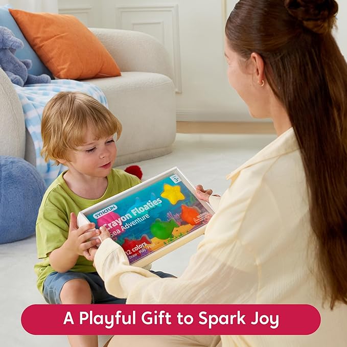 - OCEAN THEME BATH FUN: Each crayon features a playful ocean-themed shape that floats in water — doubling as a mess-free bath toy for extra fun during tub time!