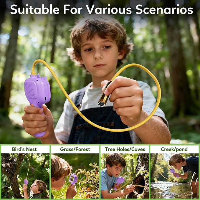 - Perfect Gift:This cute endoscope snake camera is perfect as a birthday, Christmas, back-to-school, festival and holiday gift for boys and girls aged 4, 5, 6, 7, 8, 9, 10. Not only can it bring joy to children, but it can also stimulate their scientific interest and creativity