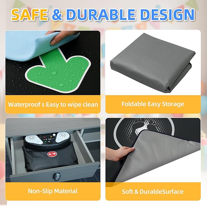 - Safe Design & Durable Use: Suitable for kids ages 3 and up, with adult supervision recommended for safe play. Battery replacement is restricted to adults, and strict guidelines prevent mixing old/new batteries or different battery types (alkaline, standard, rechargeable) for safety. The mat is designed to resist damage from sharp items, though it’s not washable to maintain its performance—perfect for long-lasting family fun.
