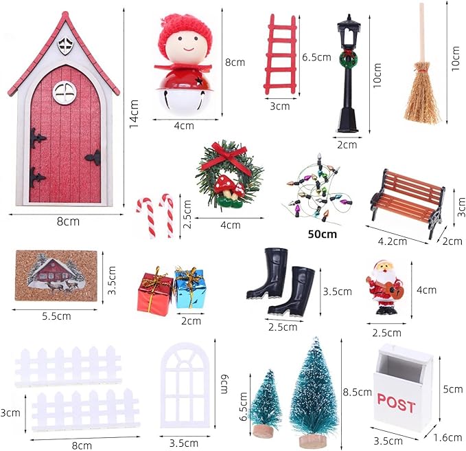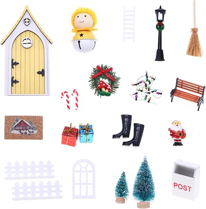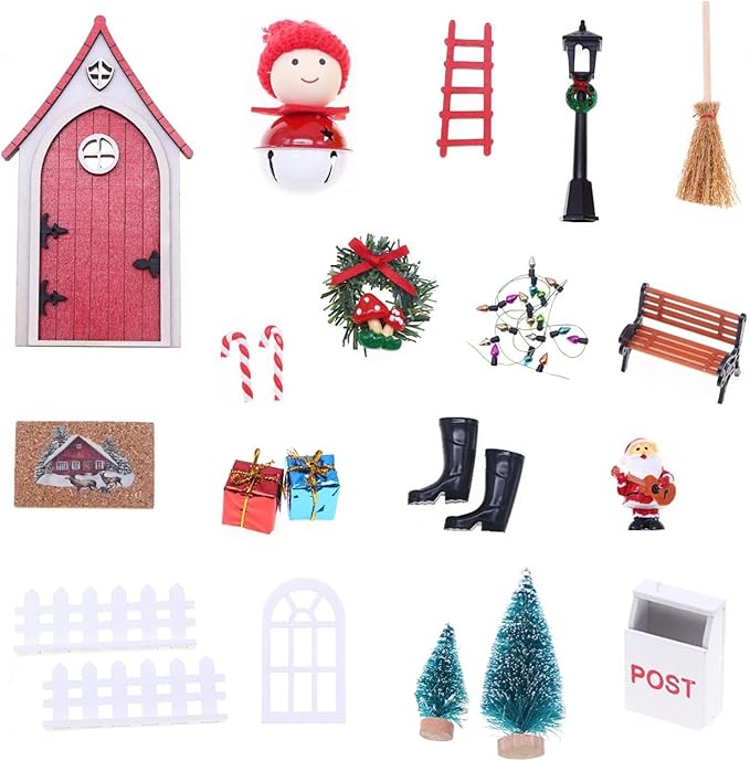- Festive Fairy Door & Elf Door: Add a sprinkle of enchantment to your decor with the included fairy door and elf door. These charming accessories create a mystical entryway for tiny visitors, making your miniature scene come alive with imagination.