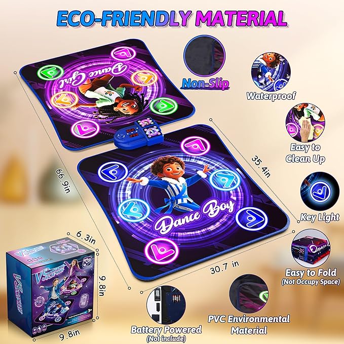- Single and Double Player Switch at Will: This is newly upgraded two-player light-up dance mat, provides single or double mode (can be easily switched between left and right). Designed perfectly for two kids to move together—without crowding—this high-energy mat encourages friendly competition or cooperative rhythm games.Fun for girls boys ages 3 4 5 6 7 8 9 10.