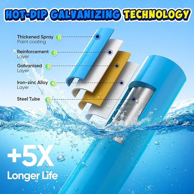 - Hot-Dip Galvanized: All-Weather Build, A ≥60μm zinc layer formed in 450°C zinc bath protects against rust, ensuring years of reliable play in any season.