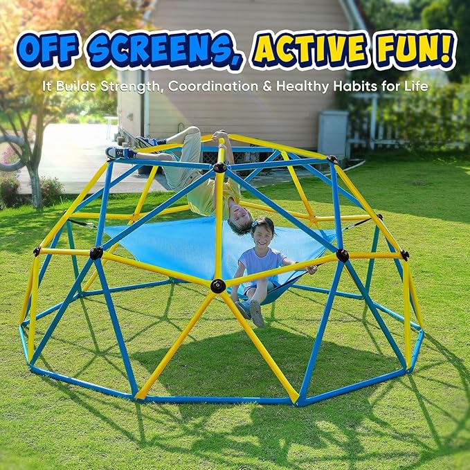 - 10FT Dome Sparks Active: Encourages kids 3-10 to climb and imagine, reducing screen time while developing balance and confidence through active play.