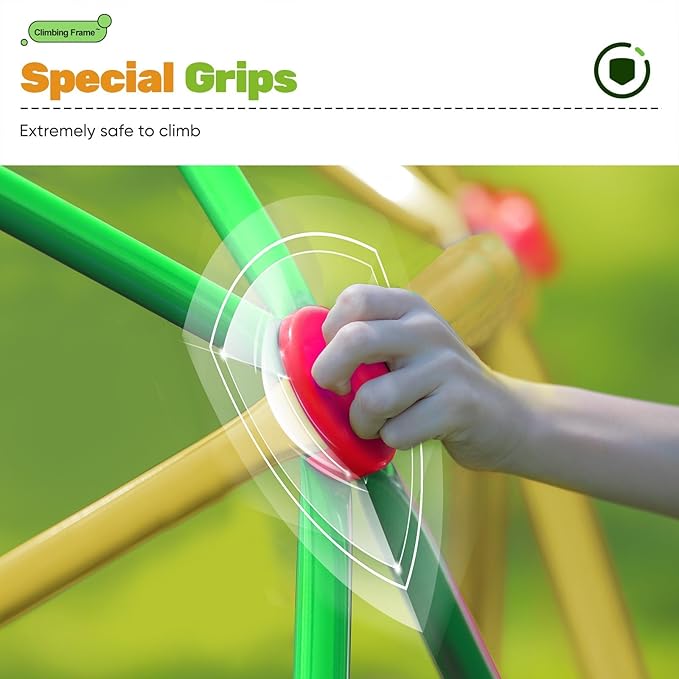 - 【3 Years Quality Assurance】For this dome climber, we not only upgraded its weight capacity, but also updated the ways of assembling. We have lengthened the screw and added a nut, which not only make the assembling much easier, but also make the climber more stable. This 2025 Upgraded kids dome climber enjoys 3-year Quality Assurance