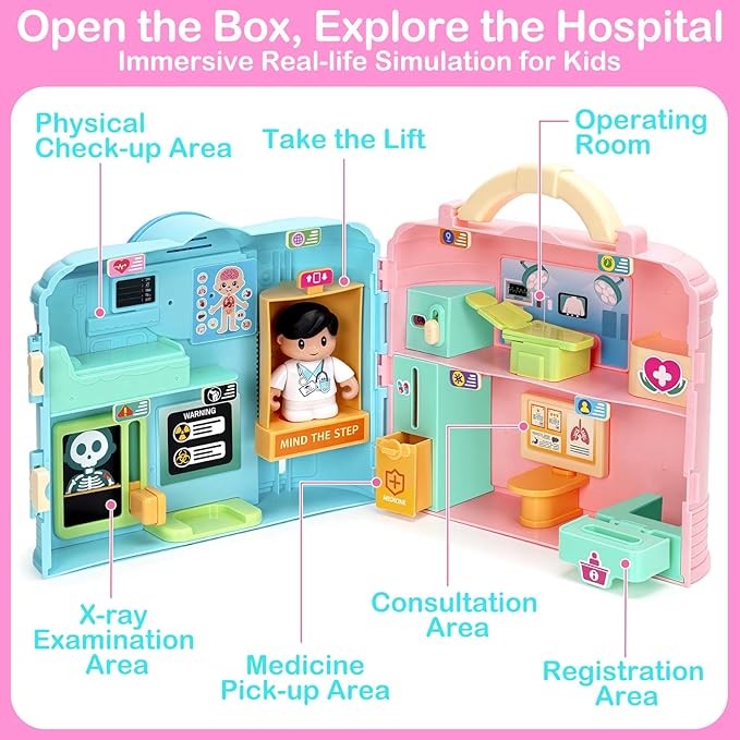- Perfect Gift for Girls: This hospital-themed doctor toy set is both entertaining and educational. It not only satisfies girls' interest in role-play, allowing them to gain happiness and growth during play, but also has cognitive and educational value, helping girls recognize hospital scenes and cultivate empathy. It is an ideal choice as birthday gifts and Christmas gifts for girls aged 2,3,4