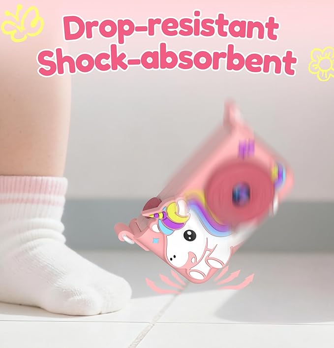 - 【Stable Shooting&Kid-Safe Design】:The included lightweight tripod offers steady support for tabletop photos and videos. A soft, non-toxic silicone case protects the camera from bumps and drops. Weighing only 3.3 ounces, it is easy for small hands to hold and comes with a convenient neck strap