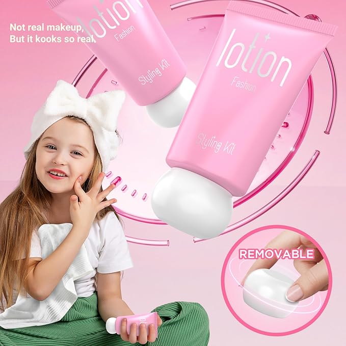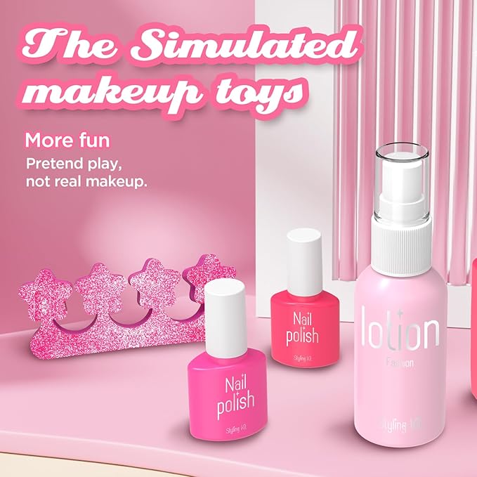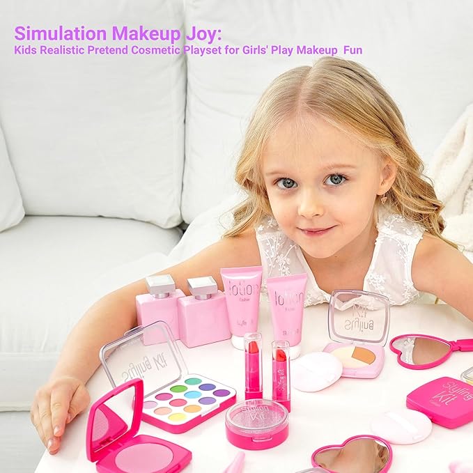 Toddler Pretend Makeup Kit with Storage Box - Fake Makeup Toys for 3-12 Year Old Girls, No Real Cosmetics, Birthday Gift Idea