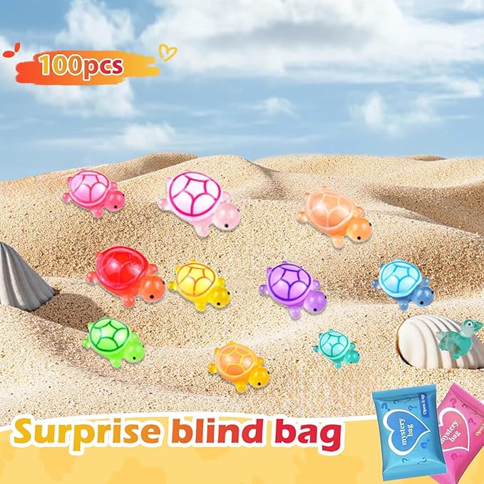 - π’ 100pcs Mystery Turtle Blind Bags β Each order includes 100 individually sealed blind bags, each containing a random mini resin turtle figurine that glows in the dark. Every opening brings a new surprise, perfect for collectors, crafters, and those who love mystery bag surprises.