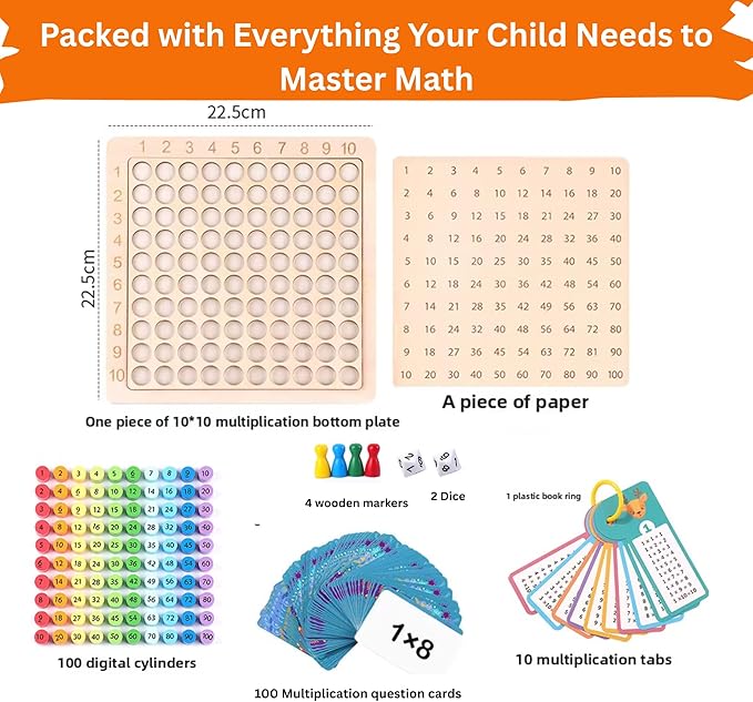 - Fun & Interactive Math Learning – Our wooden Montessori multiplication board game uses vibrant colors and engaging activities to capture children’s attention. Helps kids learn multiplication, basic math operations, and mental math skills in a playful, hands-on way.