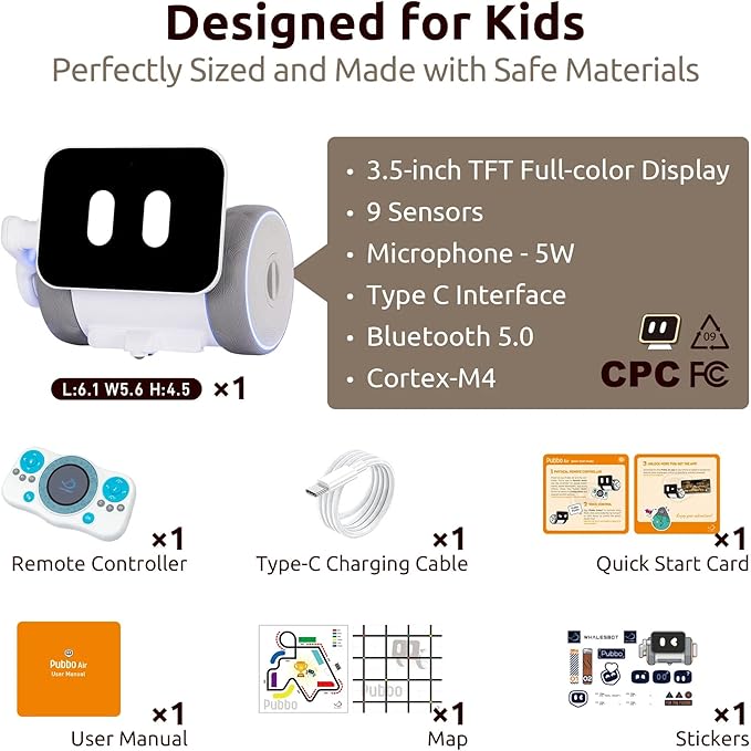 - 【A Robot That Comes Alive with a Tap】Pubbo Air isn’t just a toy — it’s a responsive, interactive friend. A simple tap wakes it up! Watch as its HD screen displays cheerful emojis and fun animations, while playful sounds capture your child’s imagination. Perfect for sparking curiosity in robotics and technology.