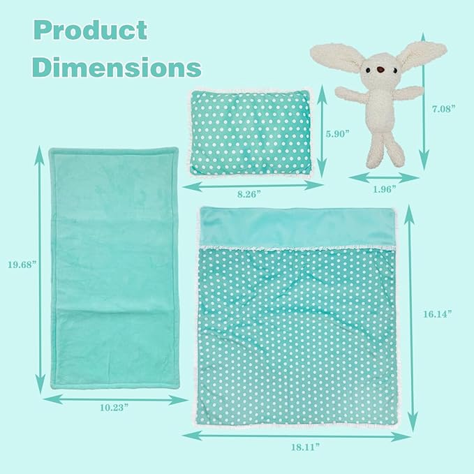 Baby Doll Accessories Bedding Set Soft Blanket Mattress Pillow Dolls Playset Fits 16-18 Inches American Doll Furniture Toy Girls and Boys (Green)