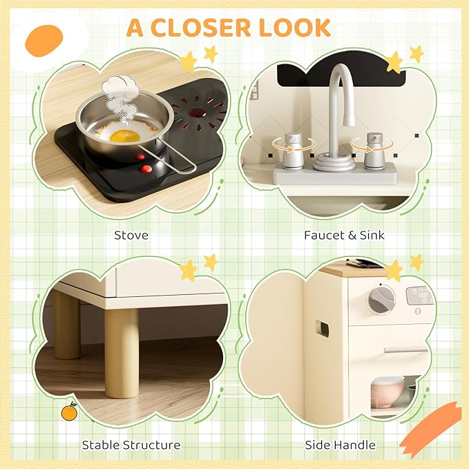 - CONVENIENT STORAGE SOLUTION: Kids kitchen offers generous storage like a cabinet and space behind the water dispenser. Kitchen playset makes it easy for toys and cookware, helping kids keep the play space tidy and organized
