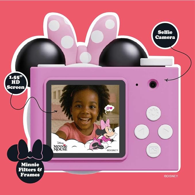 - KID-FRIENDLY DESIGN: With a charming Minnie Mouse design, this cute and portable children’s digital camera is sure to delight kids ages 3-5. Its simple design empowers little hands to confidently explore and adjust various modes and settings on their own.