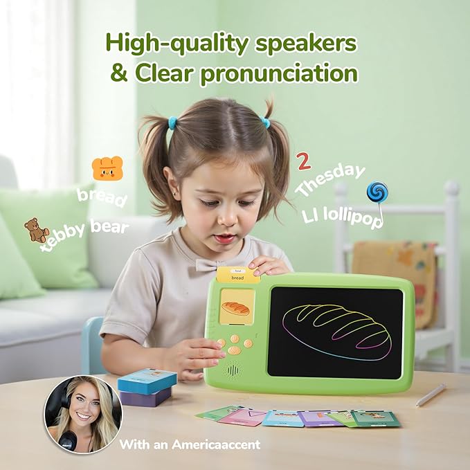 Talking Flash Cards for Toddlers - 2-in-1 LCD Writing Tablet Kids - Montessori Language Learning with 510 Words - Autism & Speech Therapy Toys for Children Gifts, Green