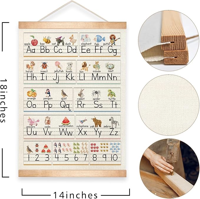 - 【Easy to Use】Printed on thick linen canvas with a natural textured surface, each chart includes solid wood hanger that keeps the kids poster flat, sturdy, and ready to hang.