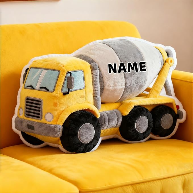 Custom Cement Tanker Shaped Pillow Cute Personalized Name Plush Doll, Double-Sided Construction Engineering Vehicle Pillow for Kids, Birthday gifts for Boys and Girls Sofa Decorative Pillows 8-32in