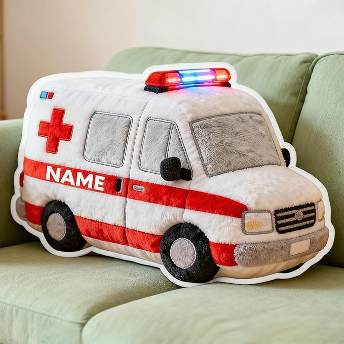 Custom Police Car Shaped Pillow Cute Personalized Name Plush Doll, Double-Sided Construction Engineering Vehicle Pillow for Kids, Birthday gifts for Boys and Girls Sofa Decorative Pillows 8-32in