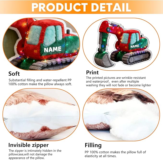 - Personalized & Custom Name:Make it uniquely theirs! This excavator pillow can be personalized with your child's name, creating a special and one-of-a-kind gift. It’s more than a pillow; it's a cherished keepsake that adds a personal touch to their room