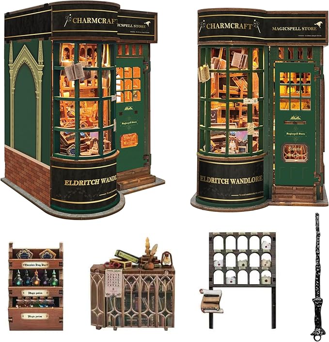 DIY Dollhouse Kit, Victorian Style Miniature Store with LED Lights,Wooden Charmcraft Magical Wand Shop,Personalized Customized Gift