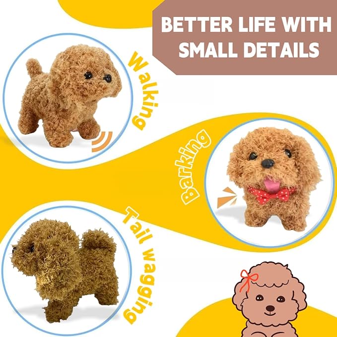- Movements and Sounds: This robot dog can walk smoothly and realistic simulation puppy makes a squeaking sound