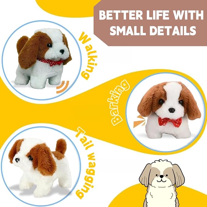 - Movements and Sounds: This robot dog can walk smoothly and realistic simulation puppy makes a squeaking sound
